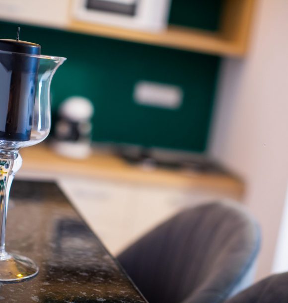 Electrocasnice incluse: plită electrică, mini frigider, chiuvetă și baterie din inox, cuptor cu microunde, espressor Tassimo cu capsule pentru 30 zile, ustensile și veselă de bucătărie