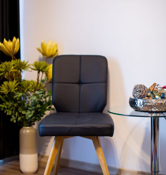 Amenajare recepție hotel cu vopsea decorativă San Marco, realizarea unui perete din sticlă securizată printată cu grafică beneficiarului, realizarea unei recepții din piele ecologică neagră, diverse dulapuri de depozitare din mdf și sticlă securizată, două fotolii din piele ecologică neagră, măsuță de cafea din sticlă, draperii blackout din catifea neagră, ușa cu sistem digital de deschidere și touchscreen, diverse tablouri și decorațiuni Mobexpert, corpuri de iluminat Eglo.